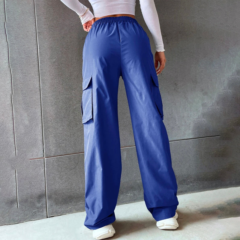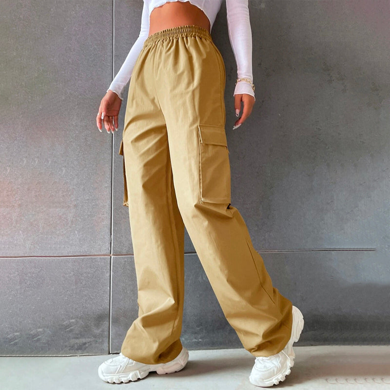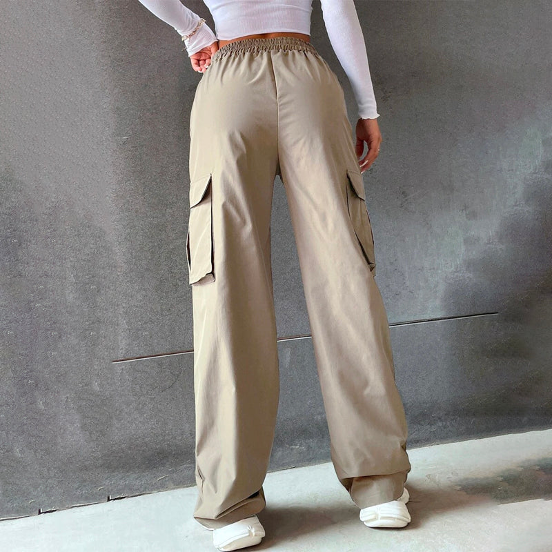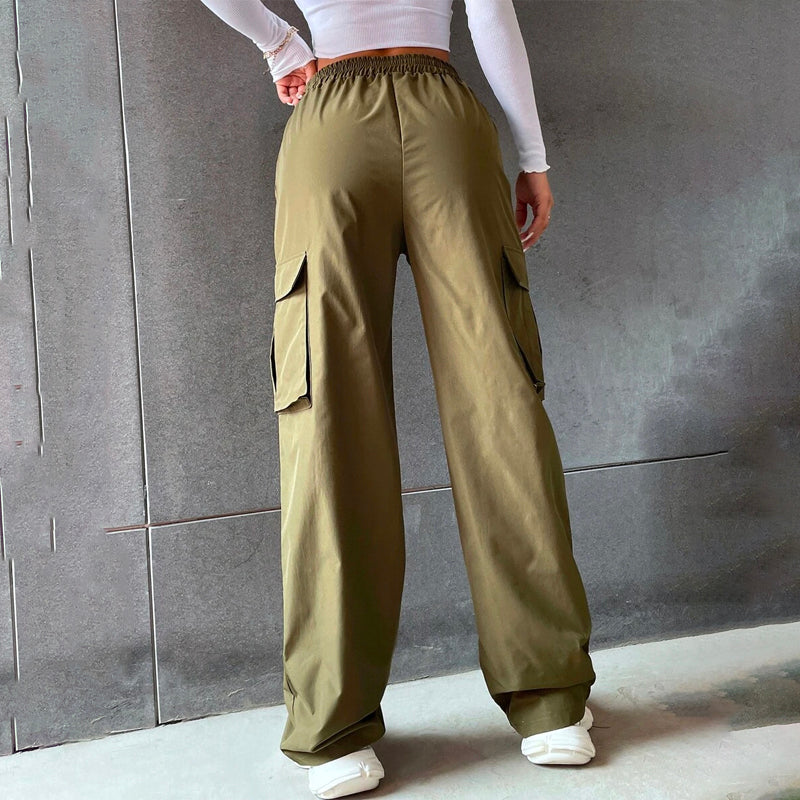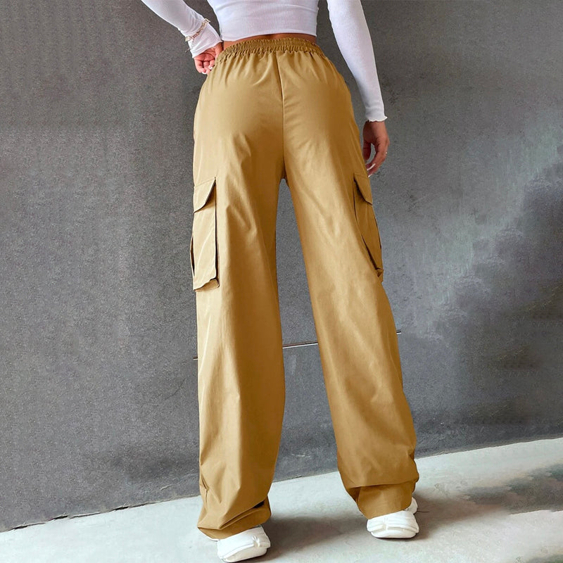 Solid High Waist Flap Pocket Cargo Pants