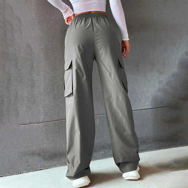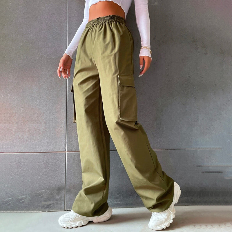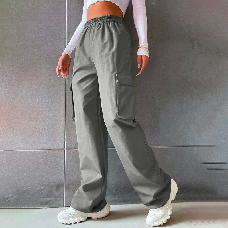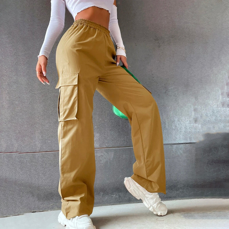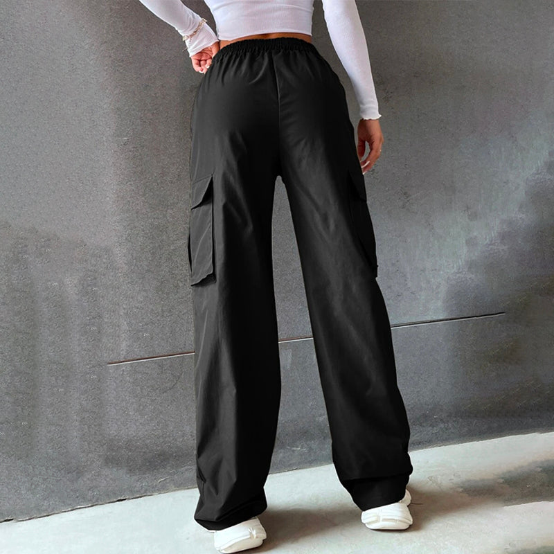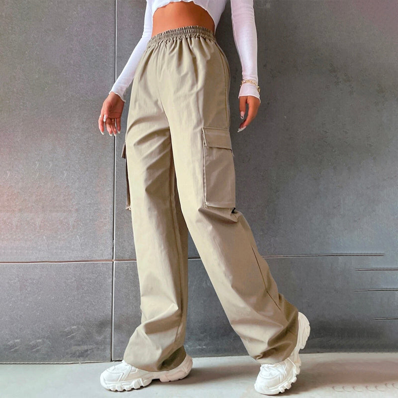 Solid High Waist Flap Pocket Cargo Pants