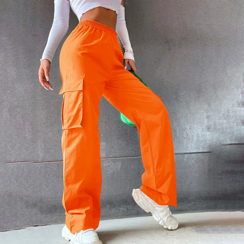 Whether you prefer to live in your pants or go out in style, these Solid High Waist Flap Pocket Cargo Pants are the perfect option for you. It's made of durable, stretchy fabric for comfort and ease of movement. Features a high waistband that shapes your figure. The polyester fabric makes them extremely comfortable and the pocket adds style to them.