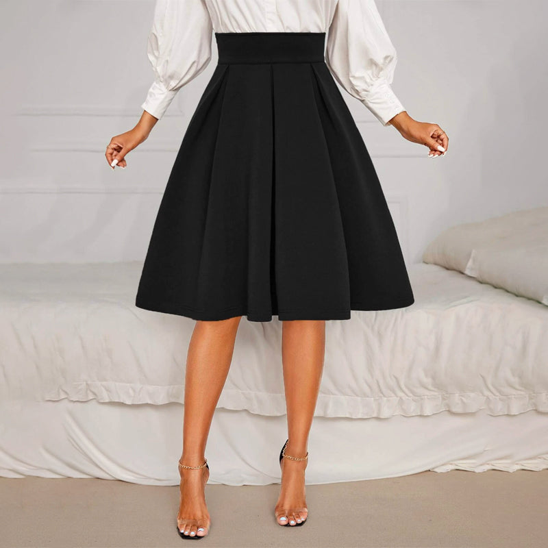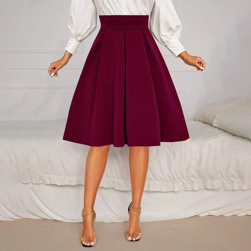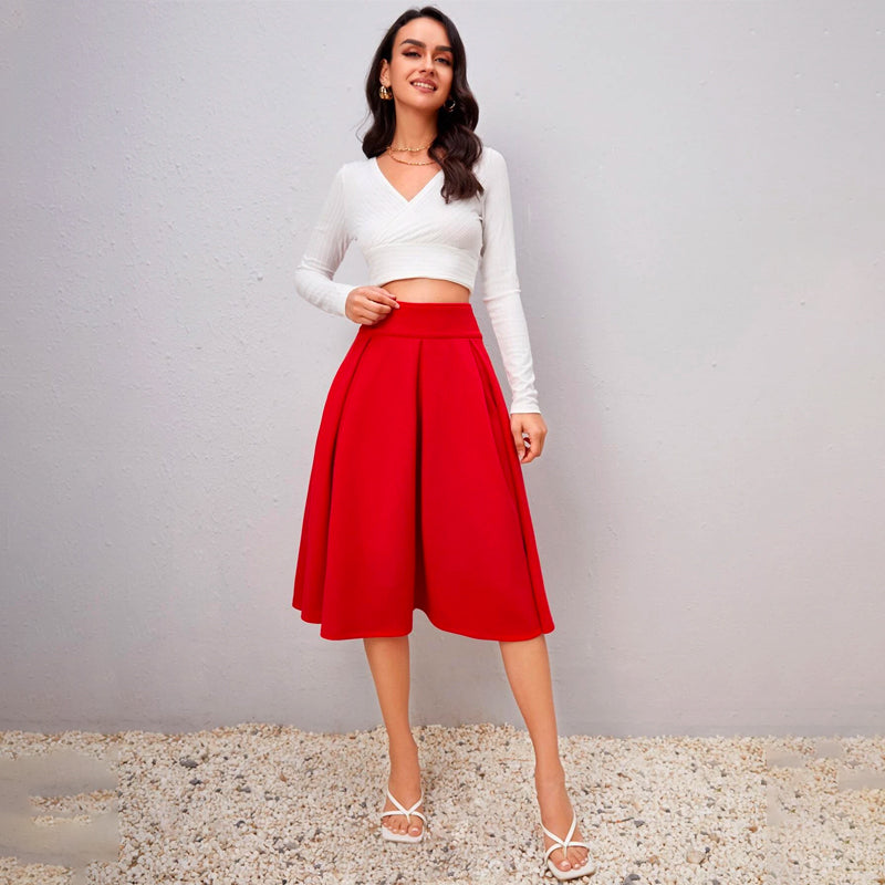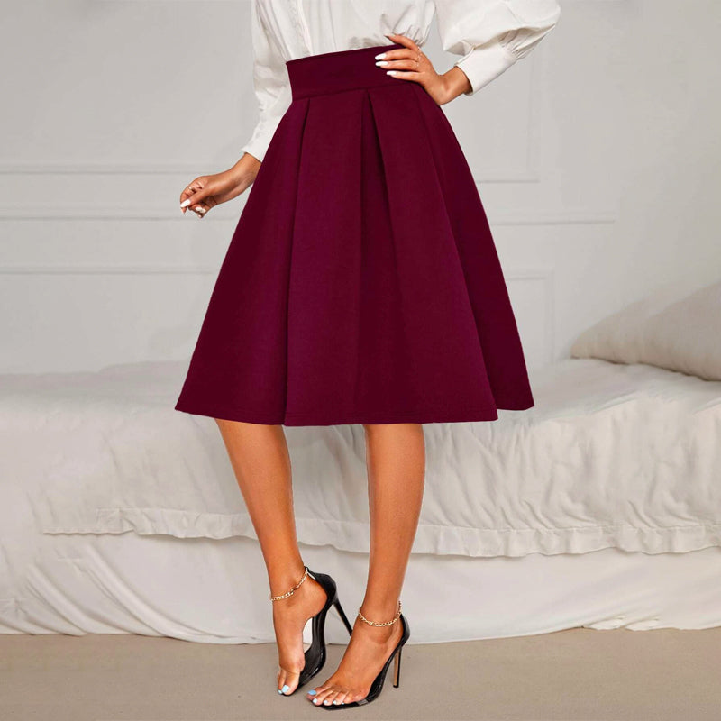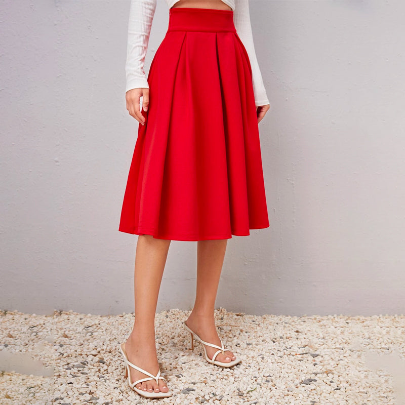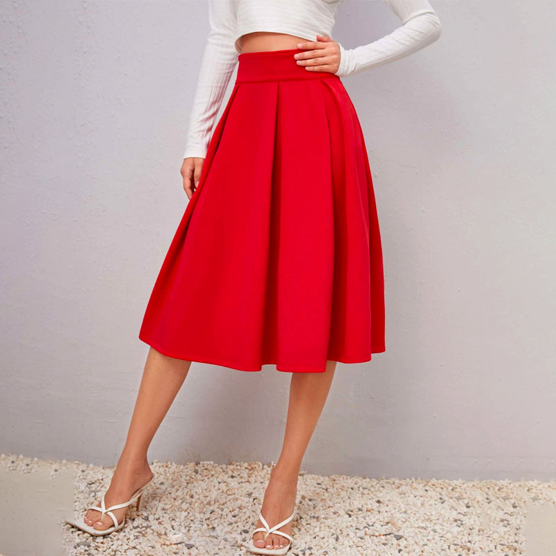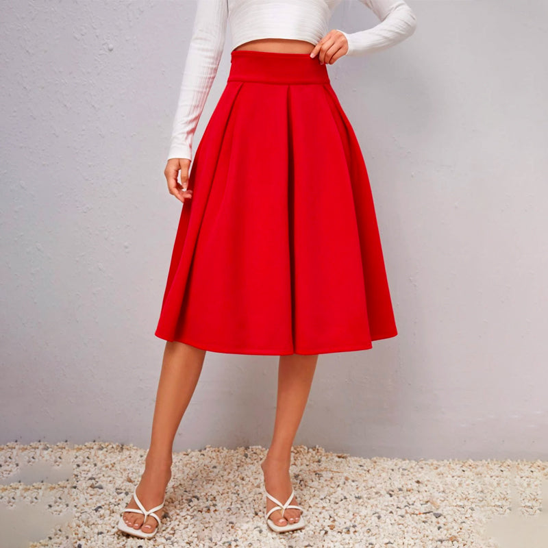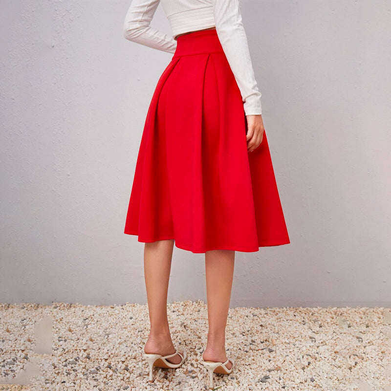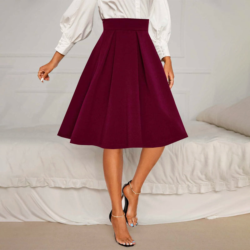 Solid High Waist Flared Skirt