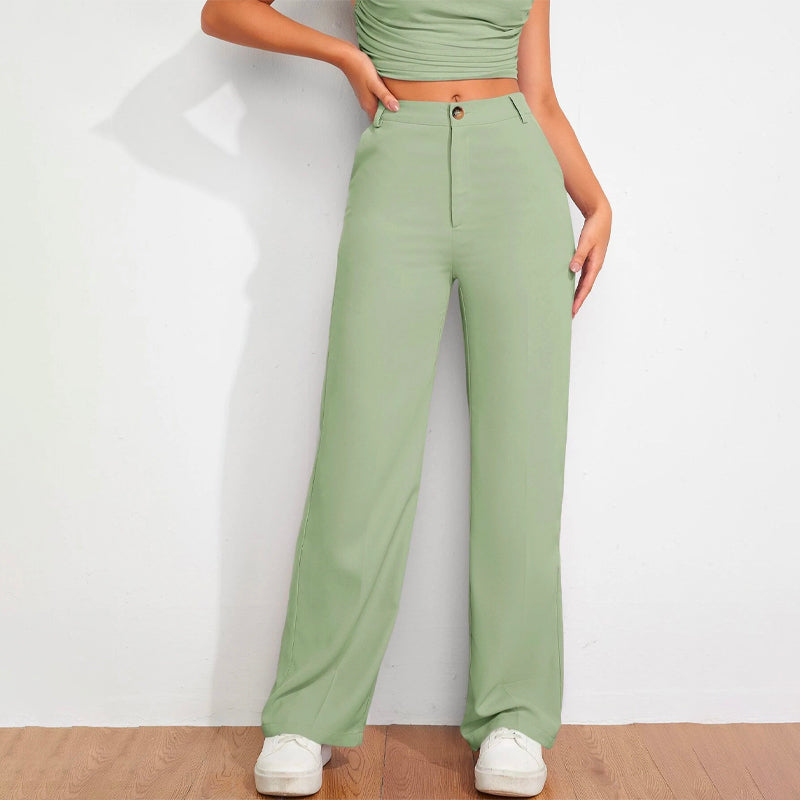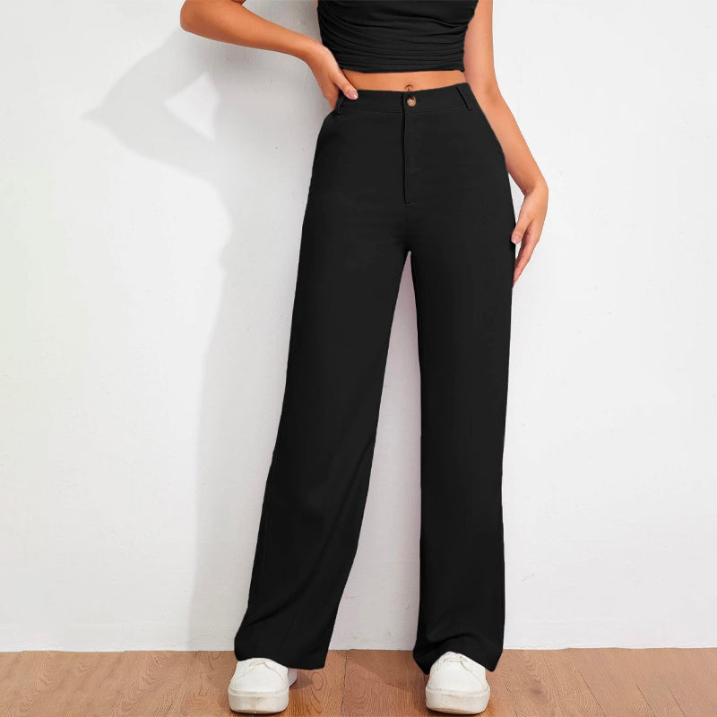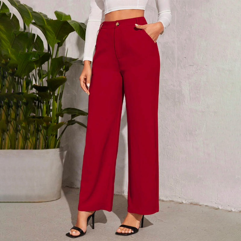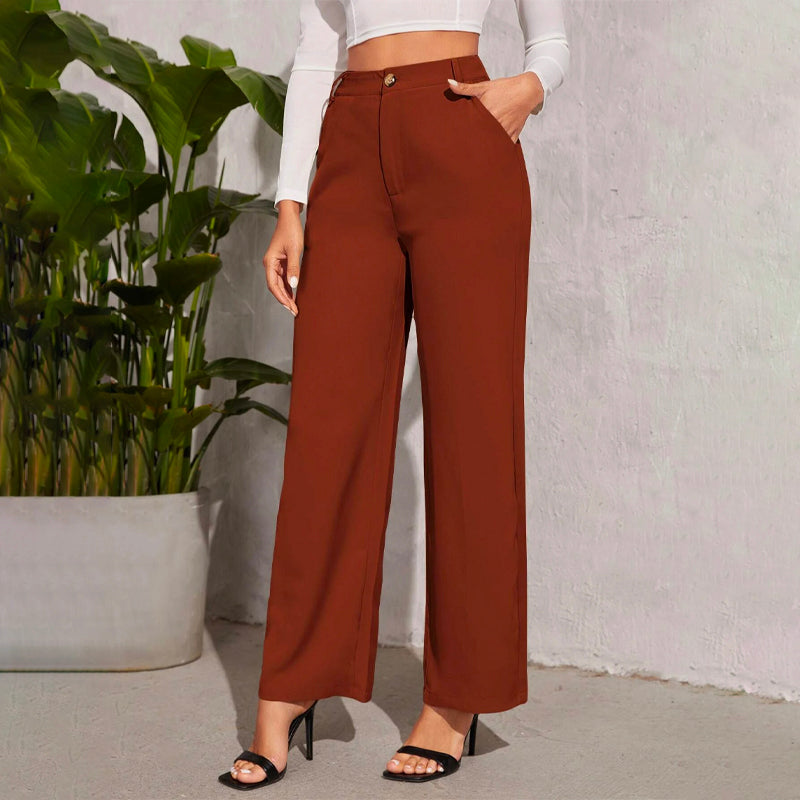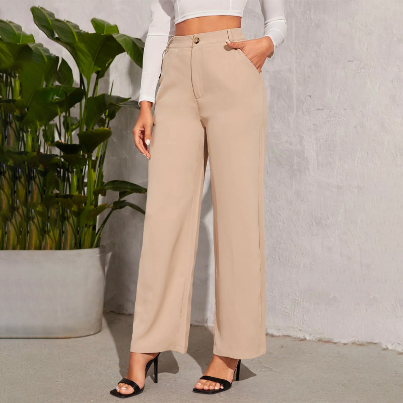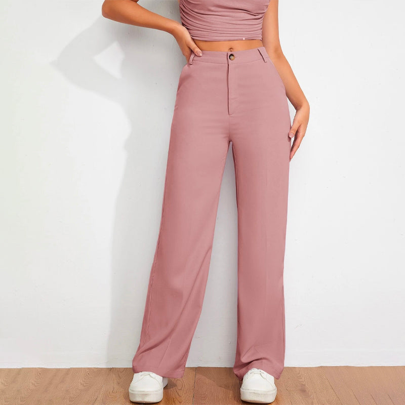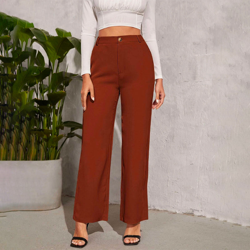 Solid High Waist Straight Leg Pants
