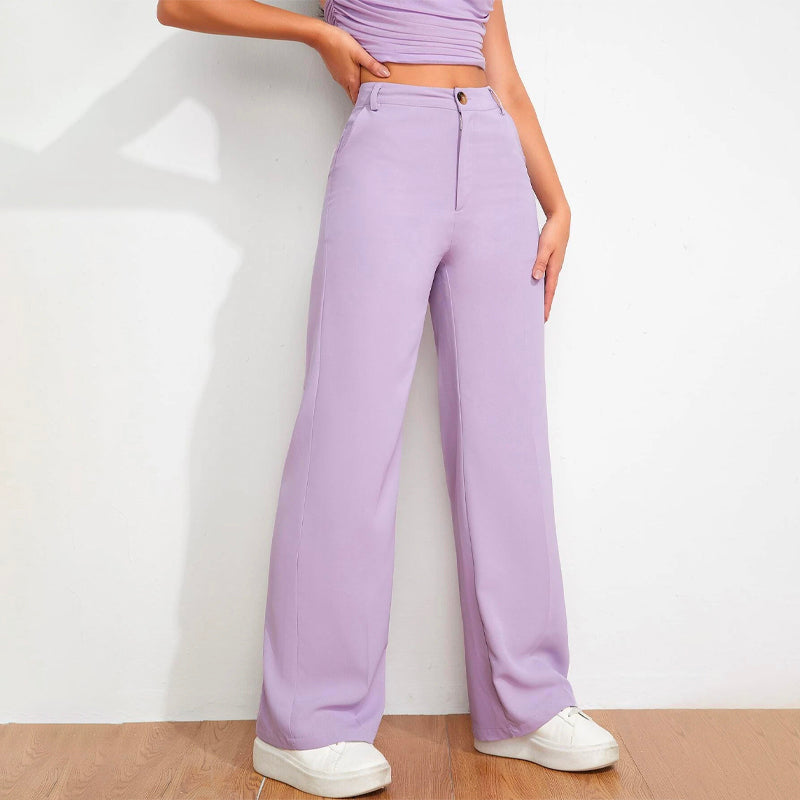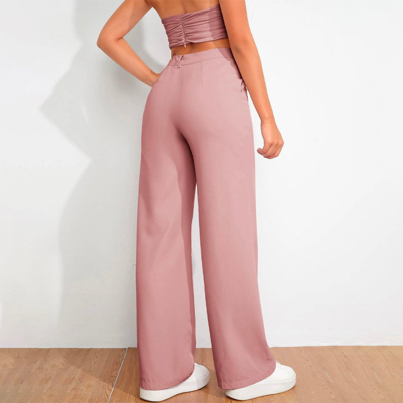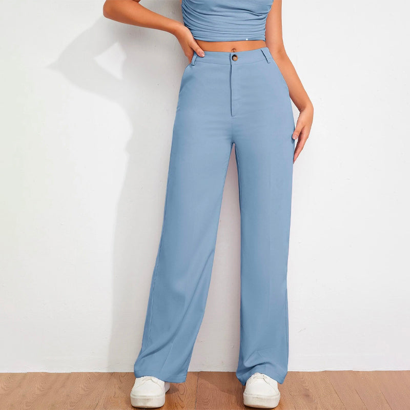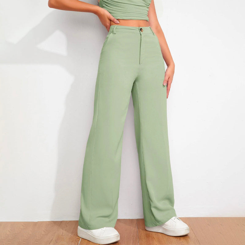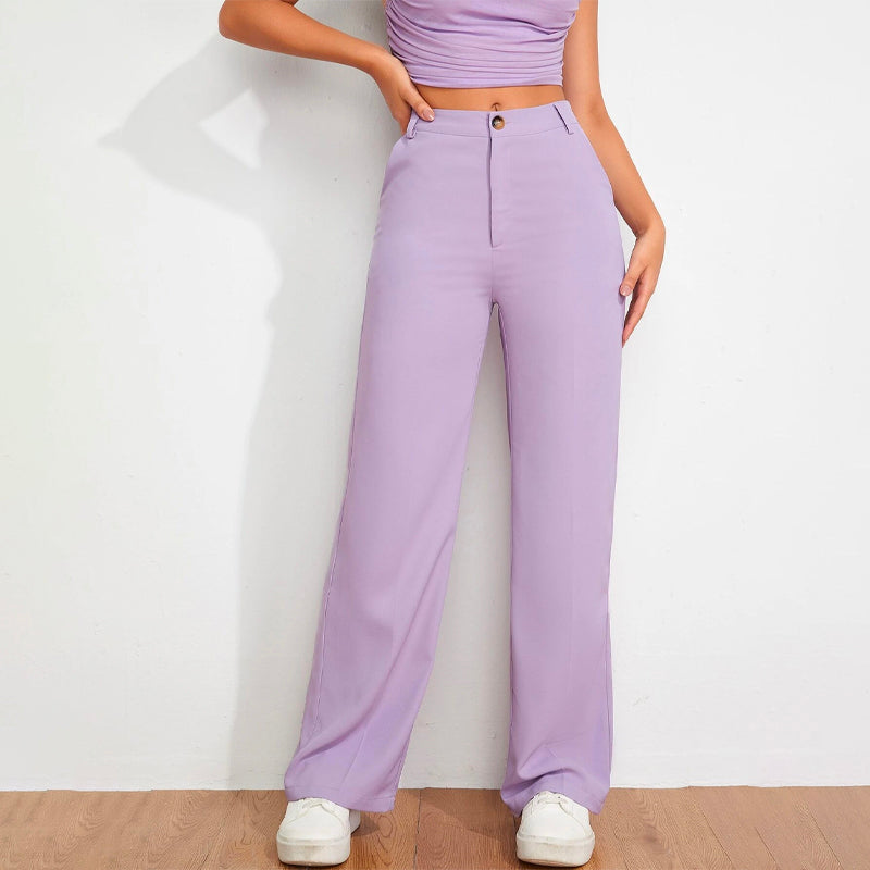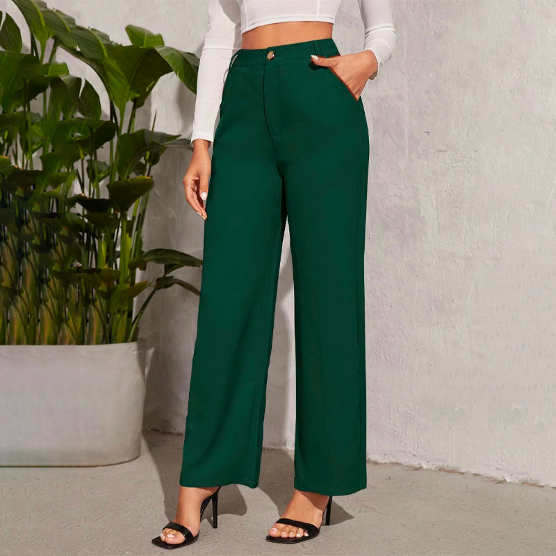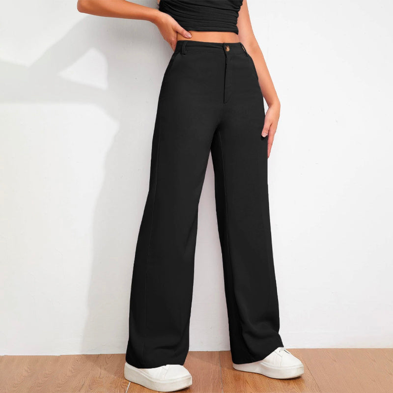 Solid High Waist Straight Leg Pants