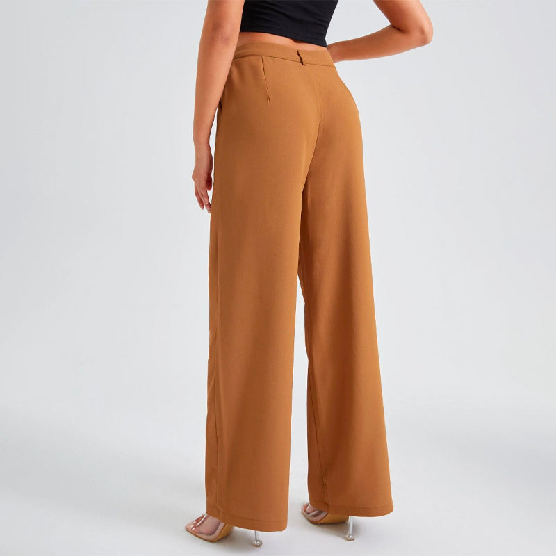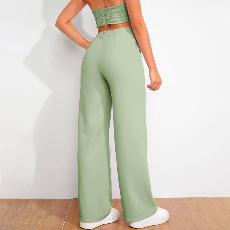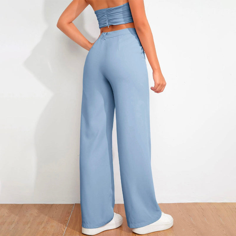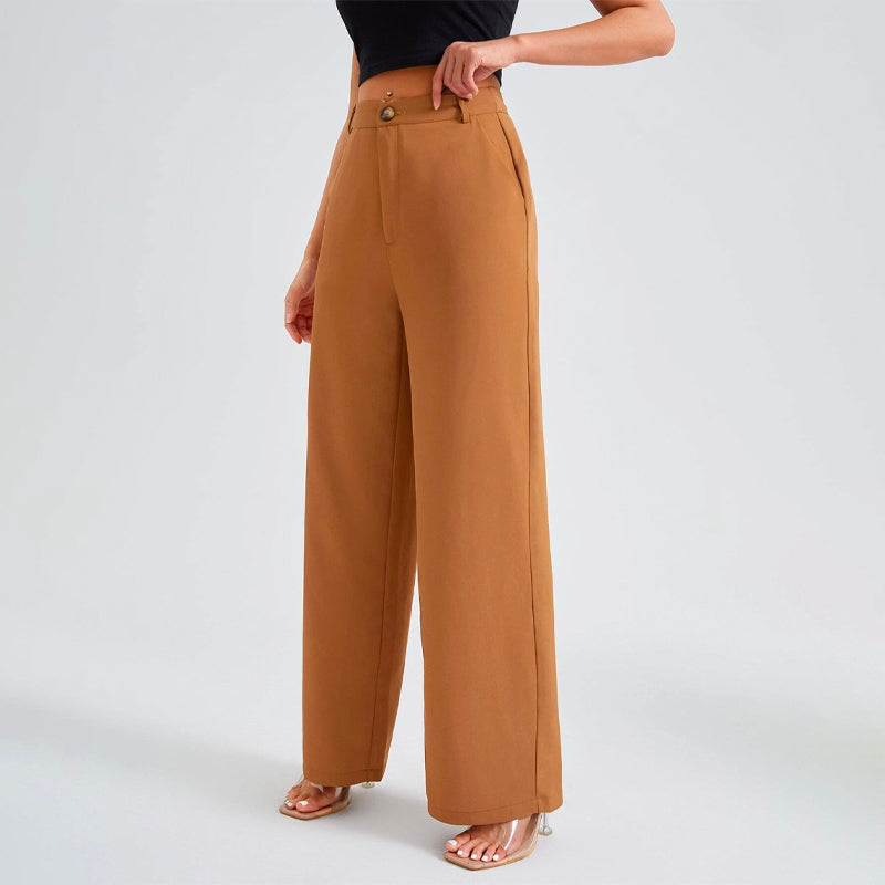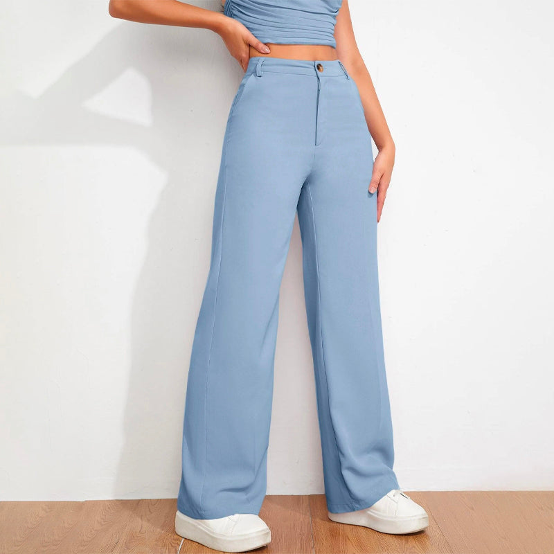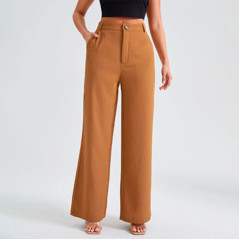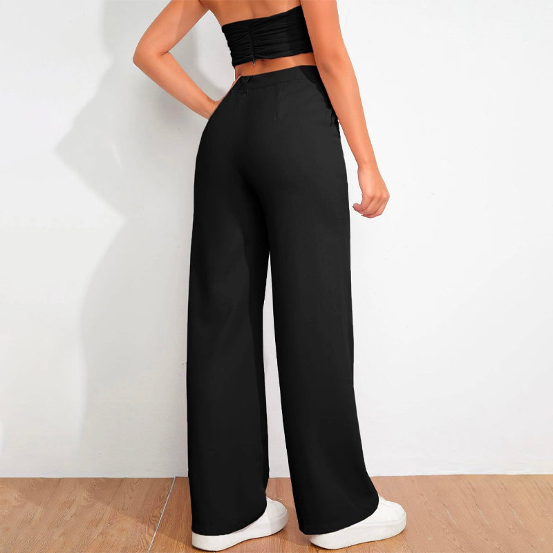 Solid High Waist Straight Leg Pants