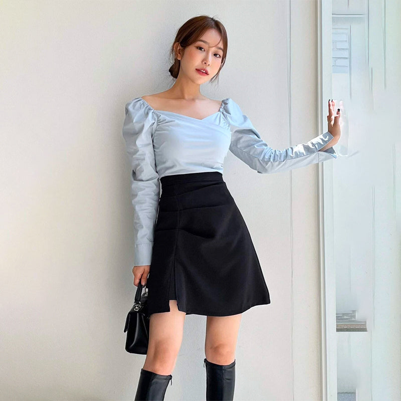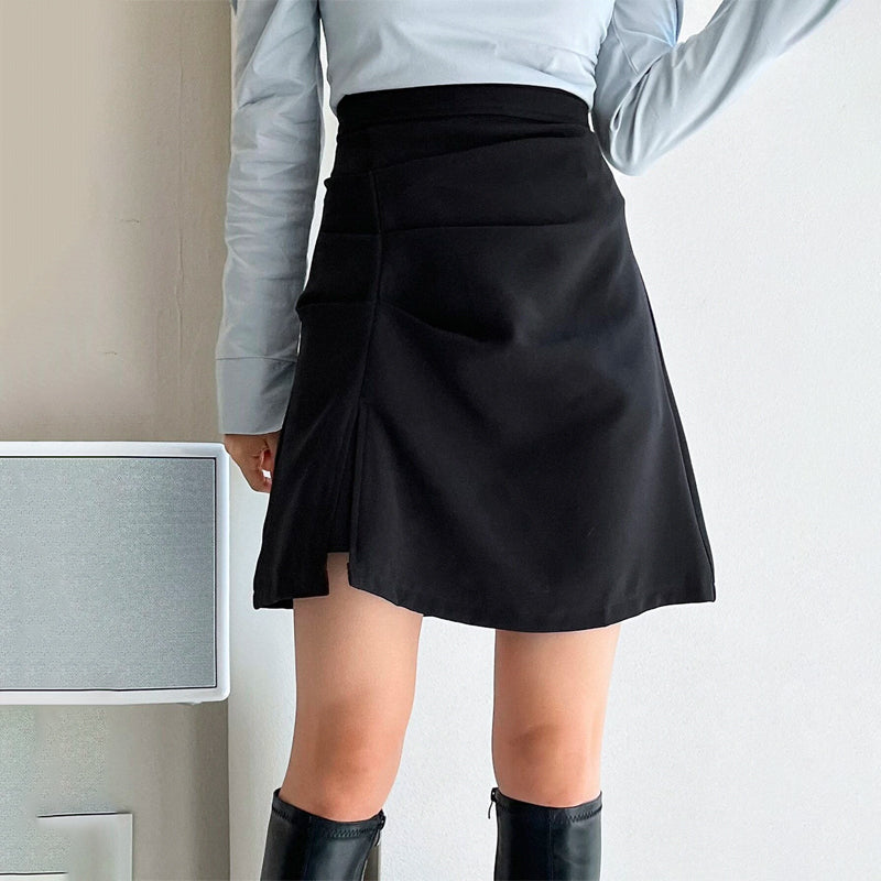 Solid Ruched Split Hem Skirt