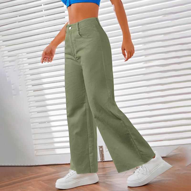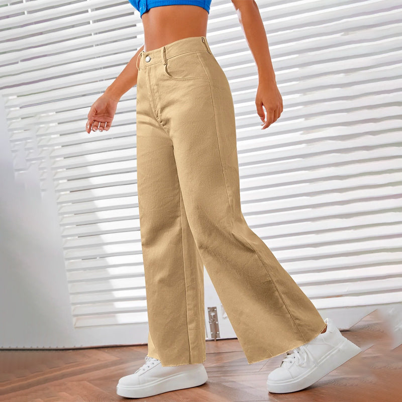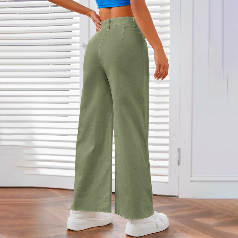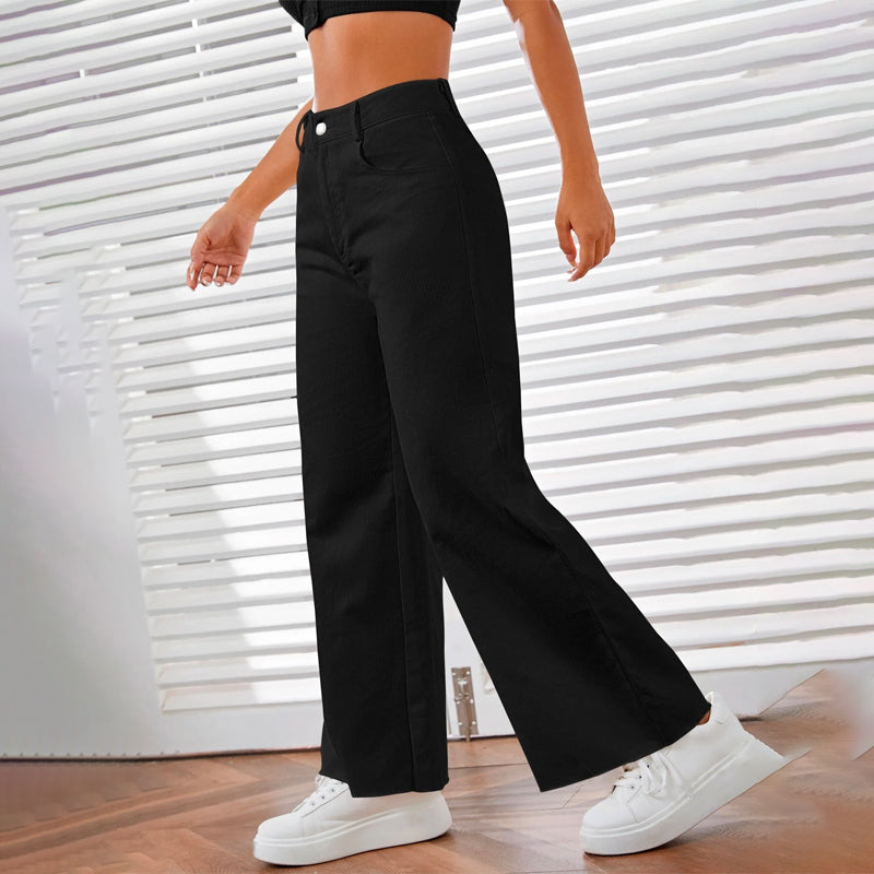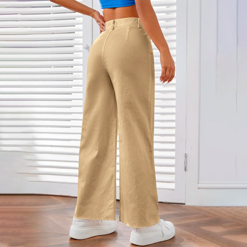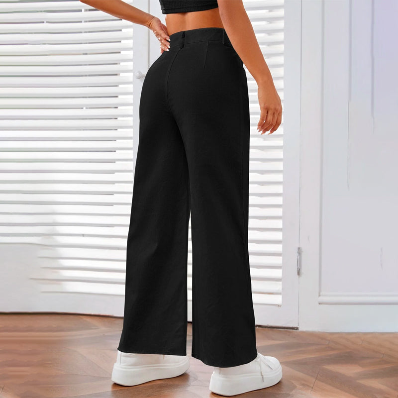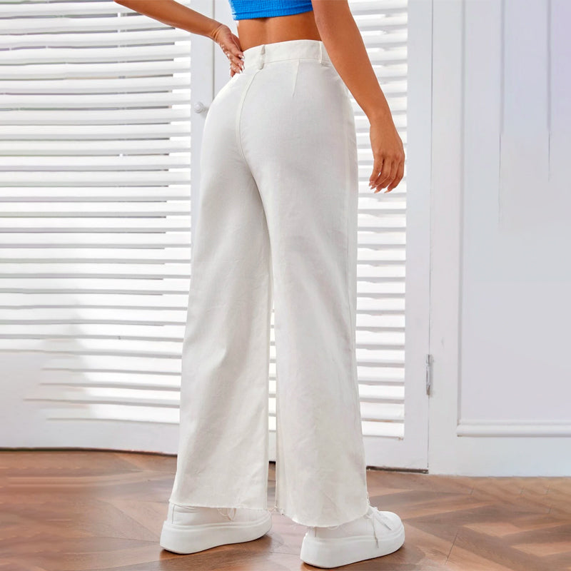 Solid Zipper Fly Wide Leg Pants