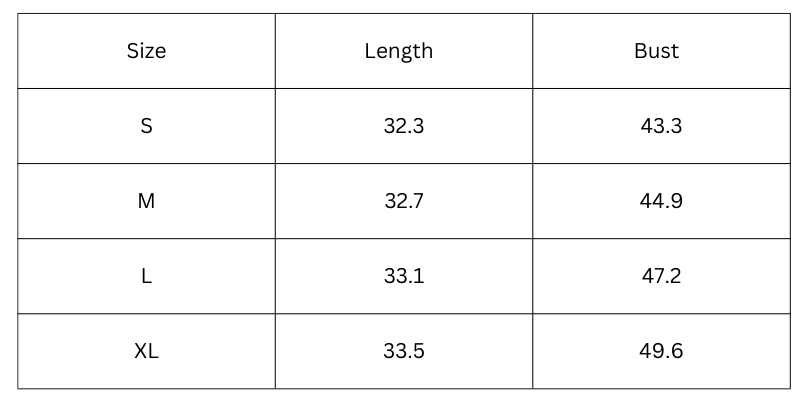 Size Chart (inches):