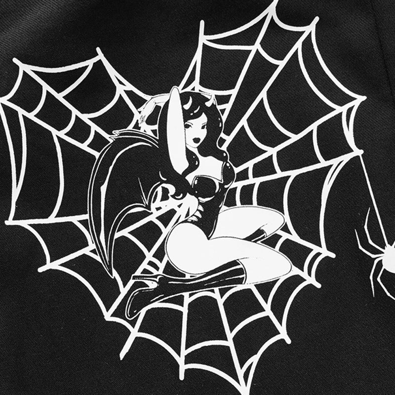 If you are a fan of graphic tees and outfits then this one will surely impress you. Spider Web Print Flare Leg Pants are made of woven fabric that ensures comfort and style at the same time. These pants come in a drop waist, regular fit, and zipper closure style that is perfect for a Halloween party or any costume party.