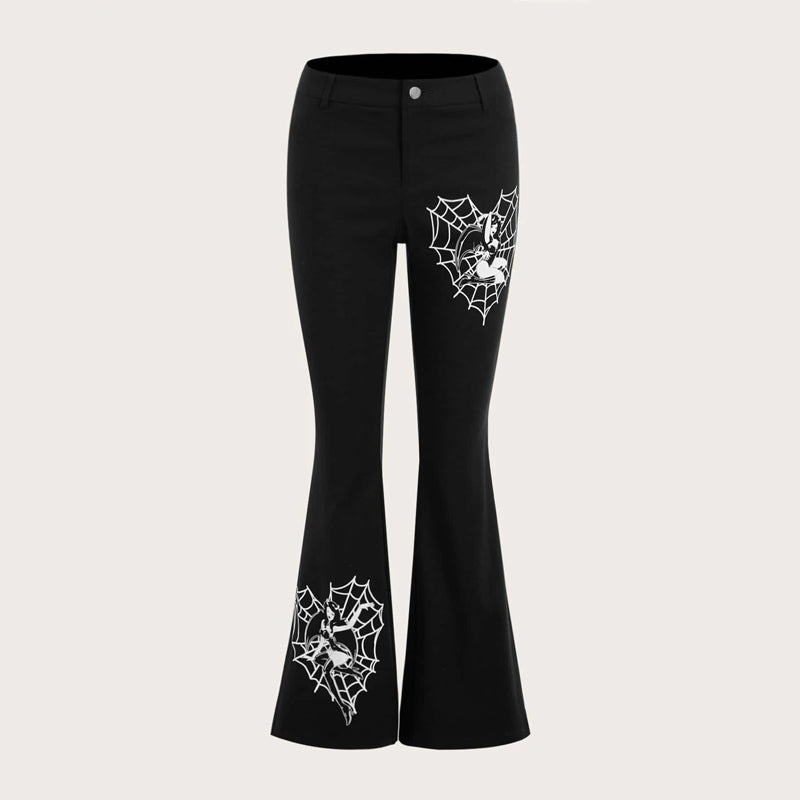 Spiderweb Print Flare Leg Pants