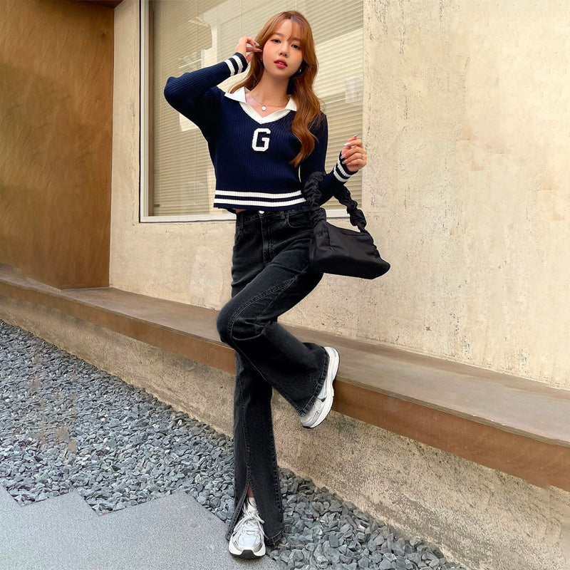 Split Hem Flare Leg Jeans