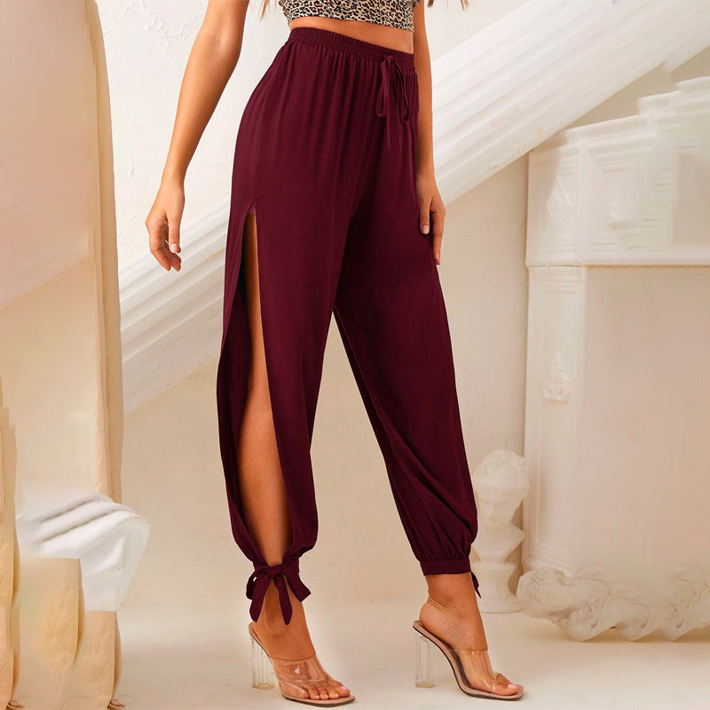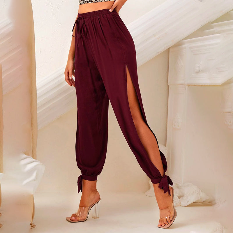Split Thigh Knot Hem Solid Pants