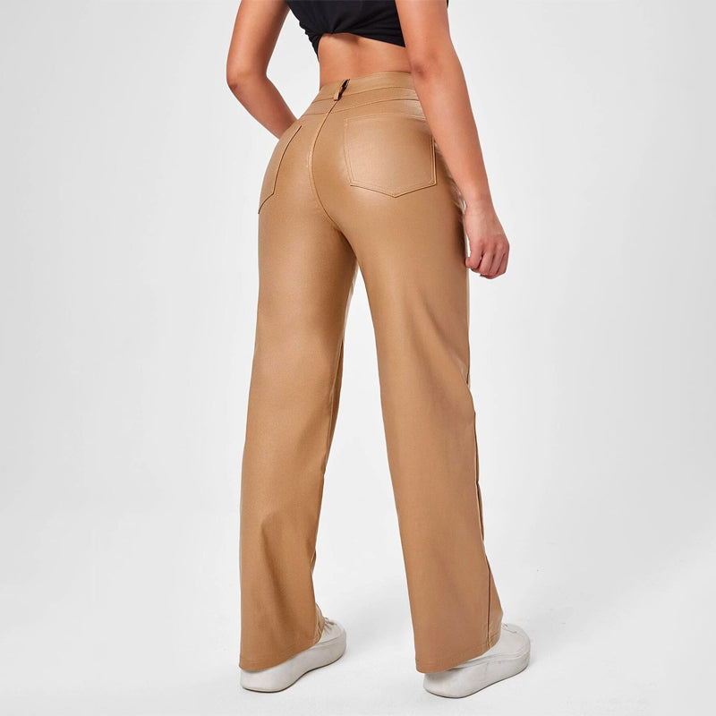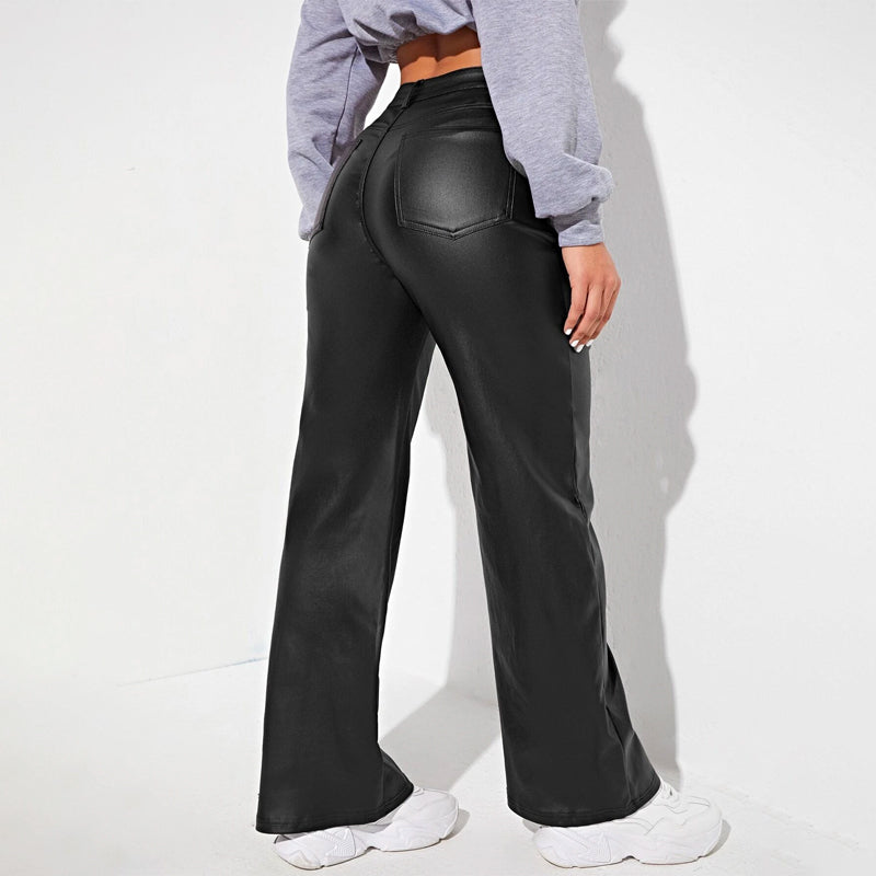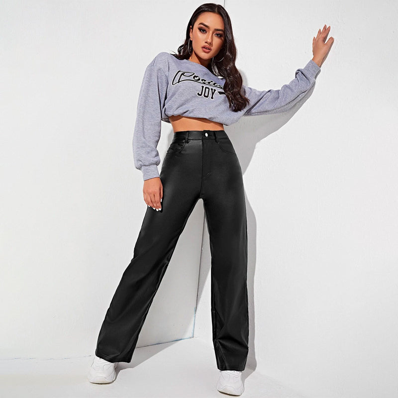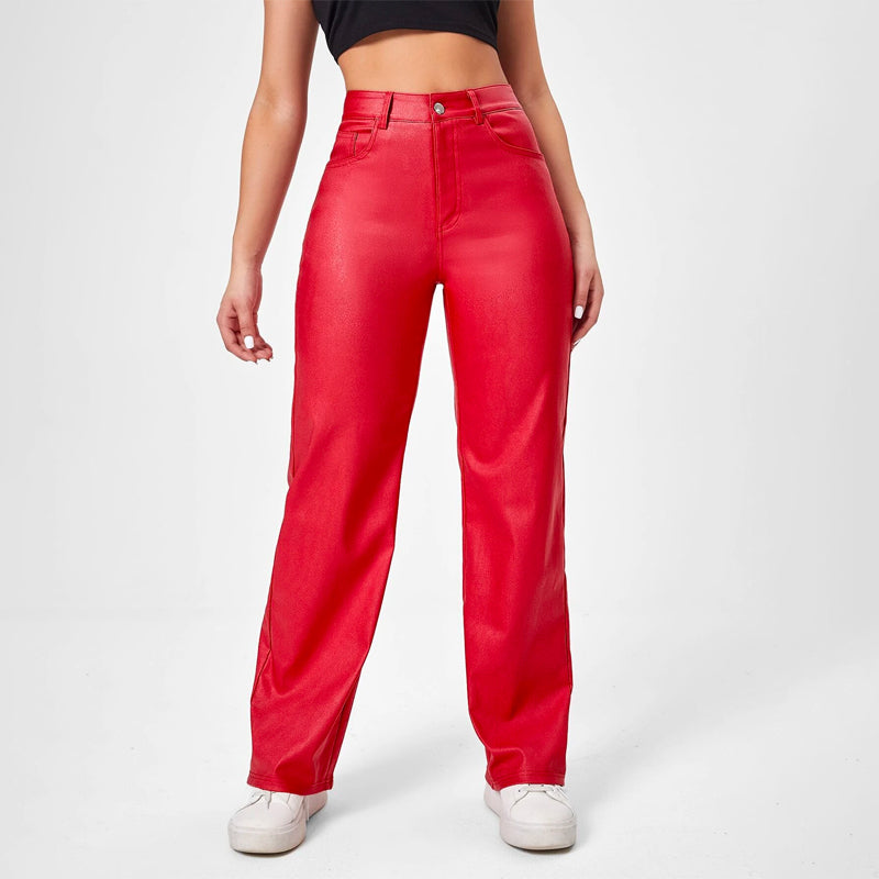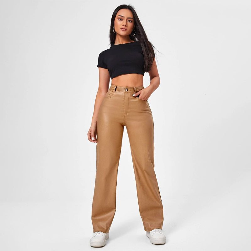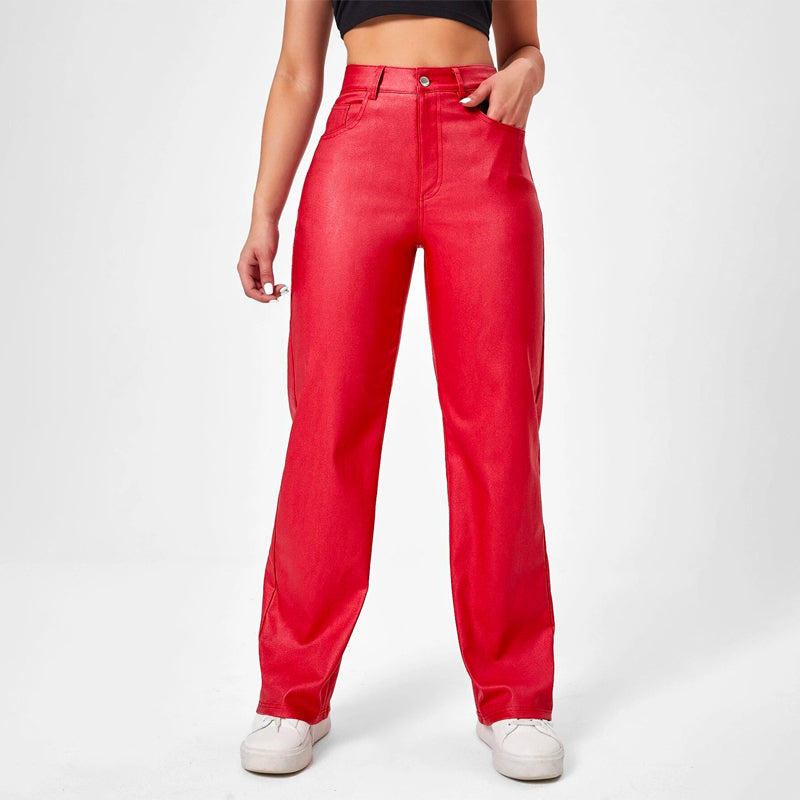 Straight Leg Leather Look Jeans are the latest in fashion making them versatile for any occasion or outing. These jeans are made of a combination of viscose, polyamide, and spandex giving them the finest texture and making them very comfortable. It goes well with any kind of top.