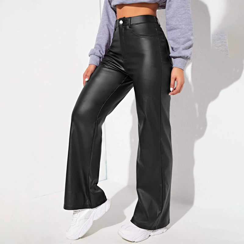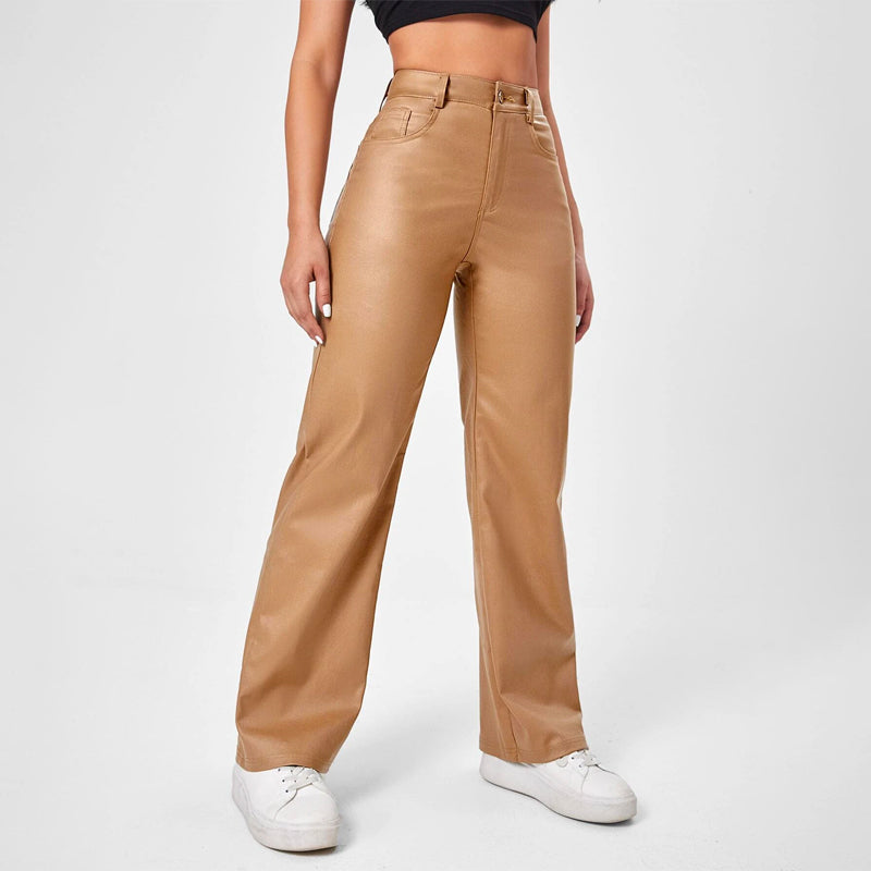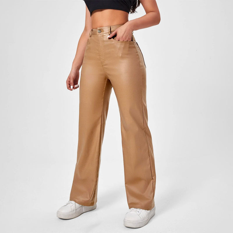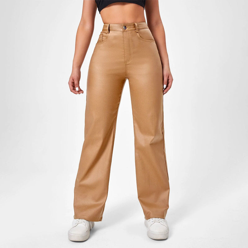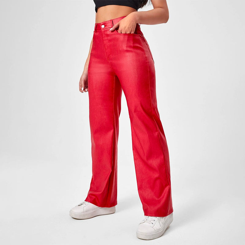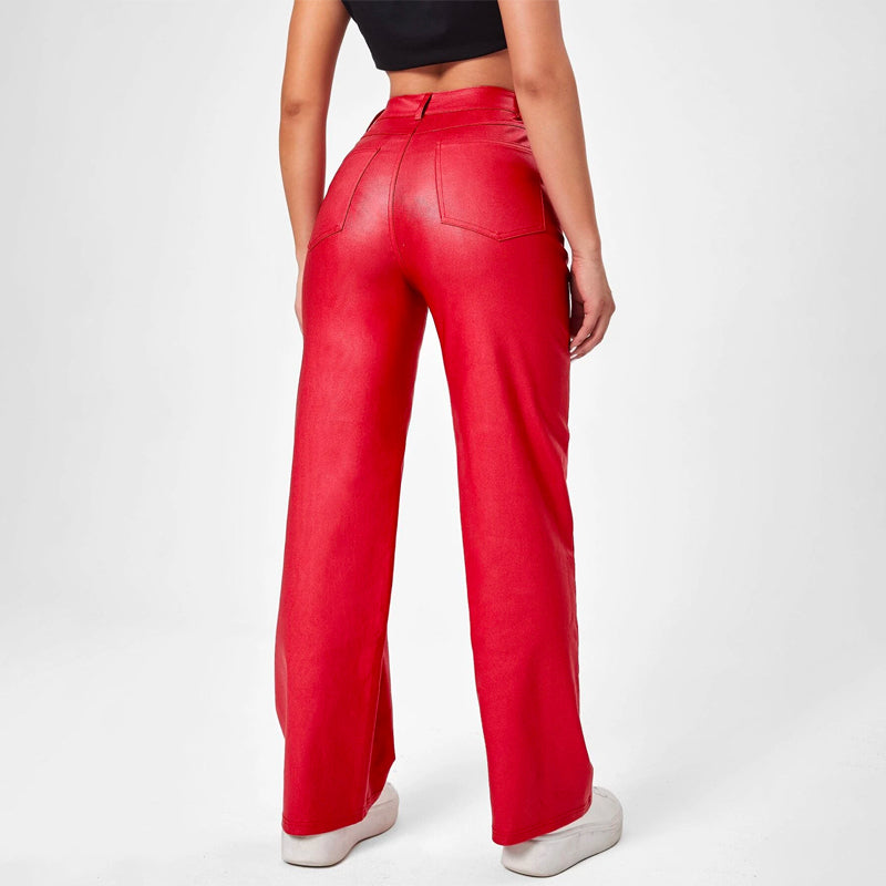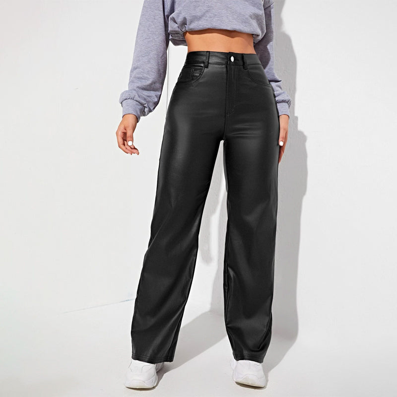 Straight Leg Leather Look Jeans are the latest in fashion making them versatile for any occasion or outing. These jeans are made of a combination of viscose, polyamide, and spandex giving them the finest texture and making them very comfortable. It goes well with any kind of top.