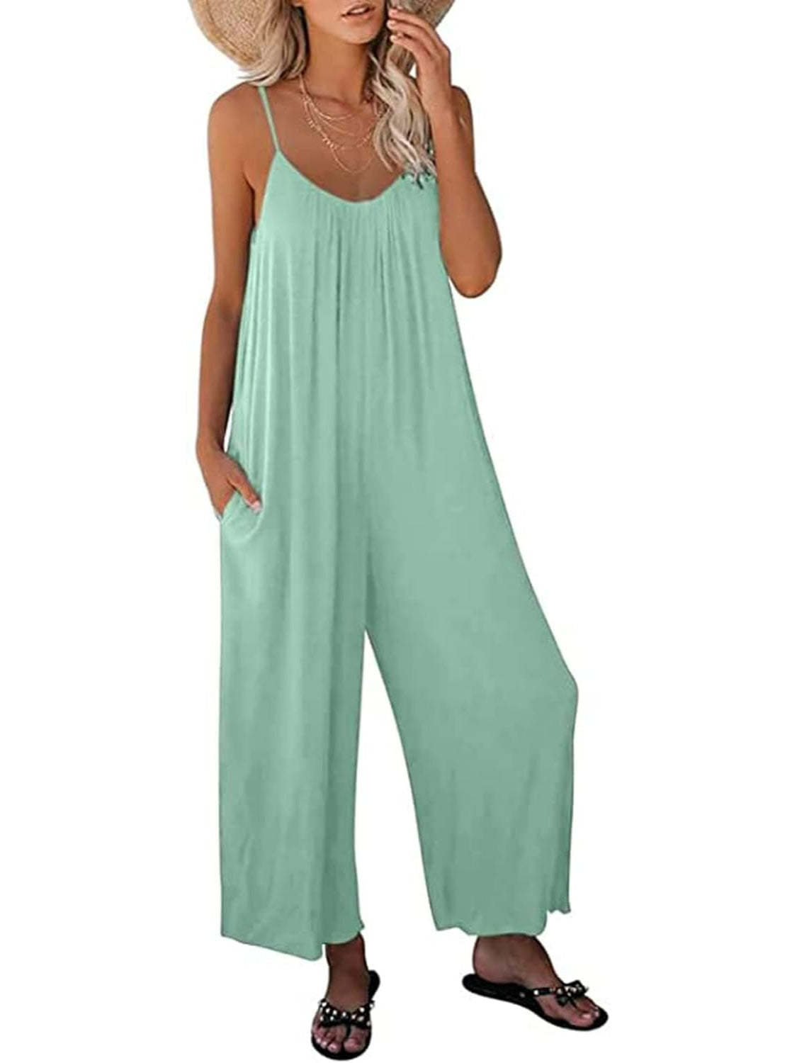 Update your casual wardrobe with this Stretchy Sleeveless Jumpsuit With Pockets featuring convenient pockets, crafted for both comfort and adaptability. Perfect for a variety of occasions, it blends a soft, stretchy fabric with a silhouette for an effortlessly stylish look.