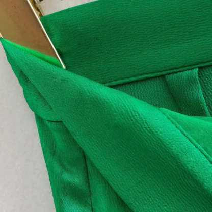 These super-comfy Stylish Green Flowing Satin Straight Pants For Women have an incredible vintage design and are fashionable. The solid pattern on these pants adds to their elegance and demand. These pants, which are made of premium polyester, will give your personality a boost. They come in four various sizes, so you may pick your favorite one to wear for every event or party.