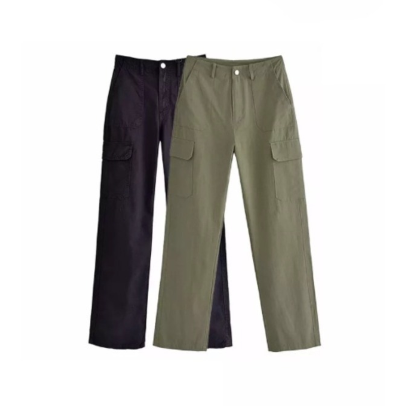 Stylish Side Patch Pockets Straight Cargo Pants
