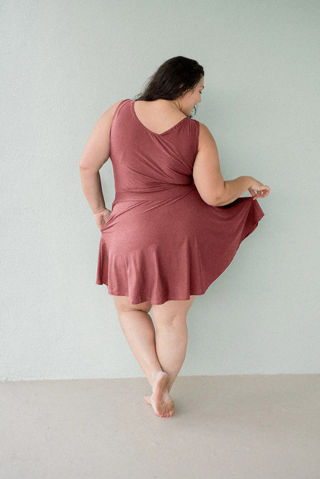 The high-waist, flowy skirt with built-in shorts and pockets — this skort is perfect for your days on the go, from pickle ball courts to carpool pick up to pool time with the family and beyond! Pair it with our wrap top for a nursing friendly version of the pepper swim dress top.