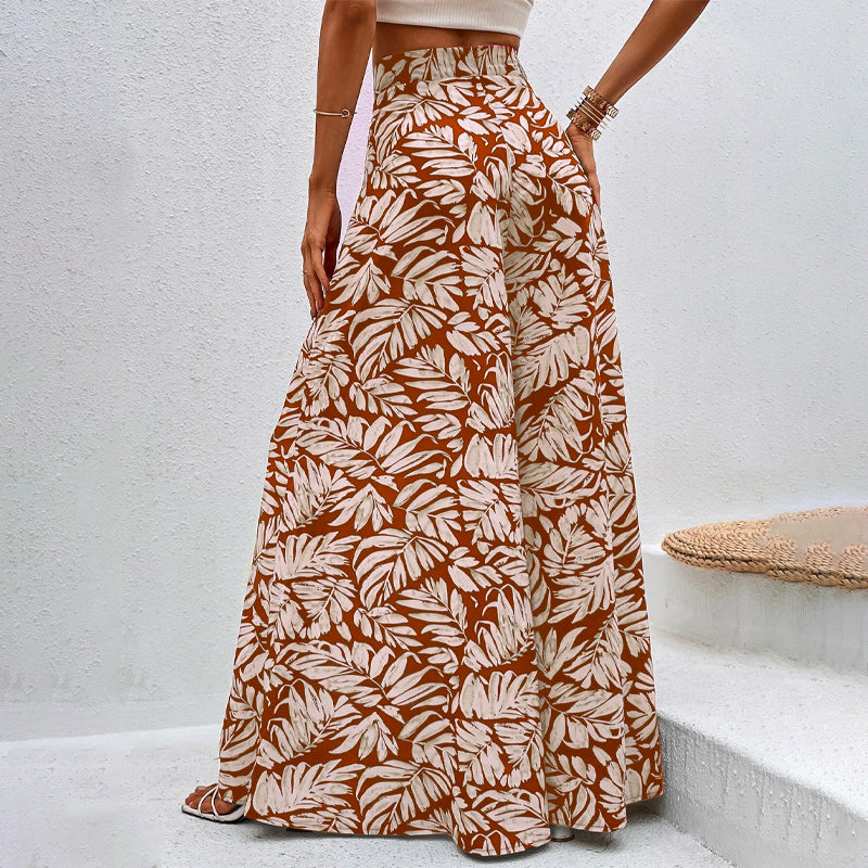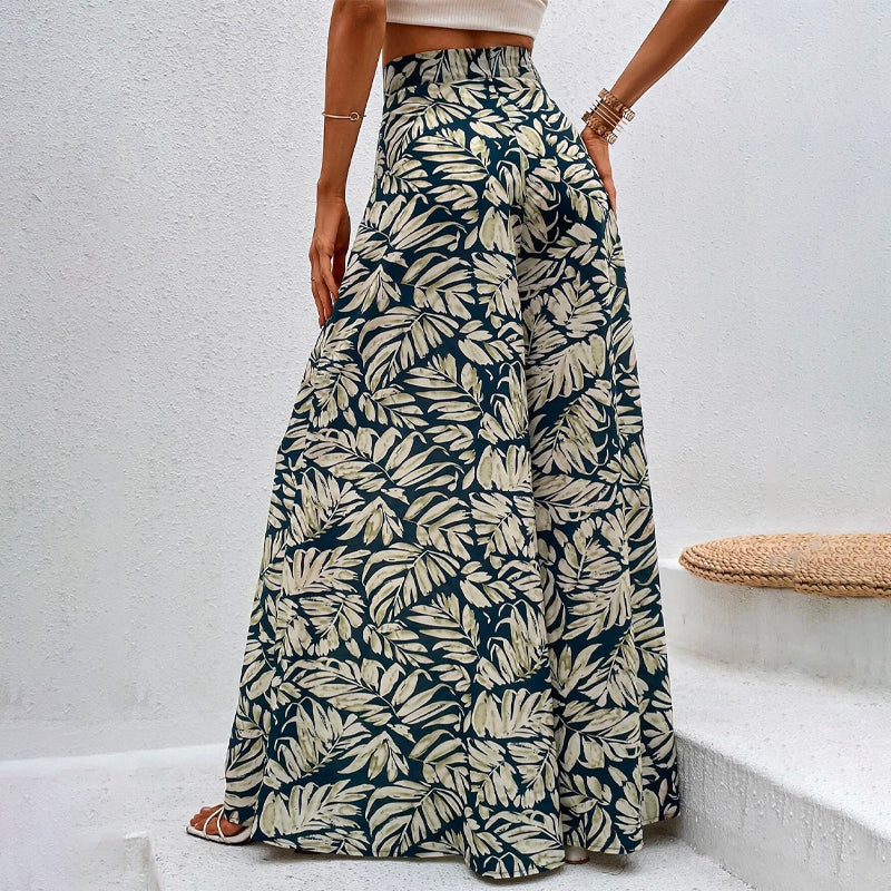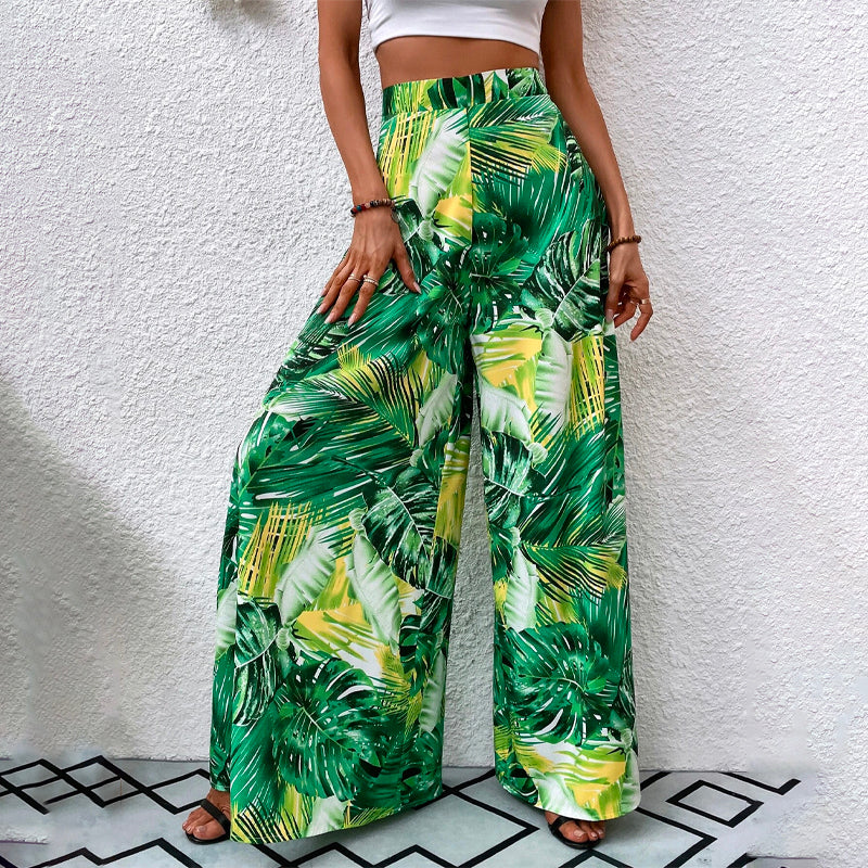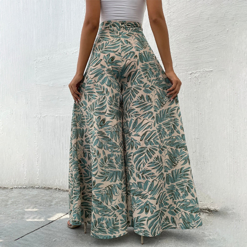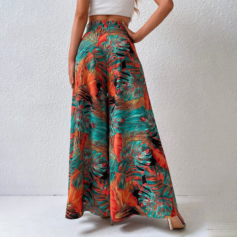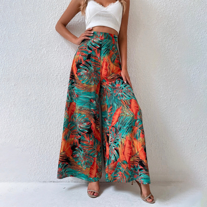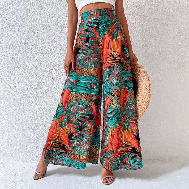 Tropical Print Wide Leg Pants