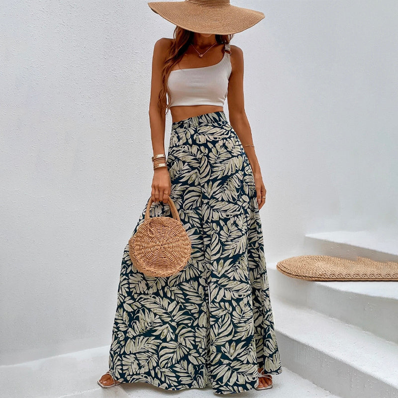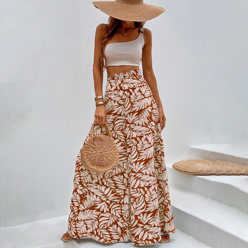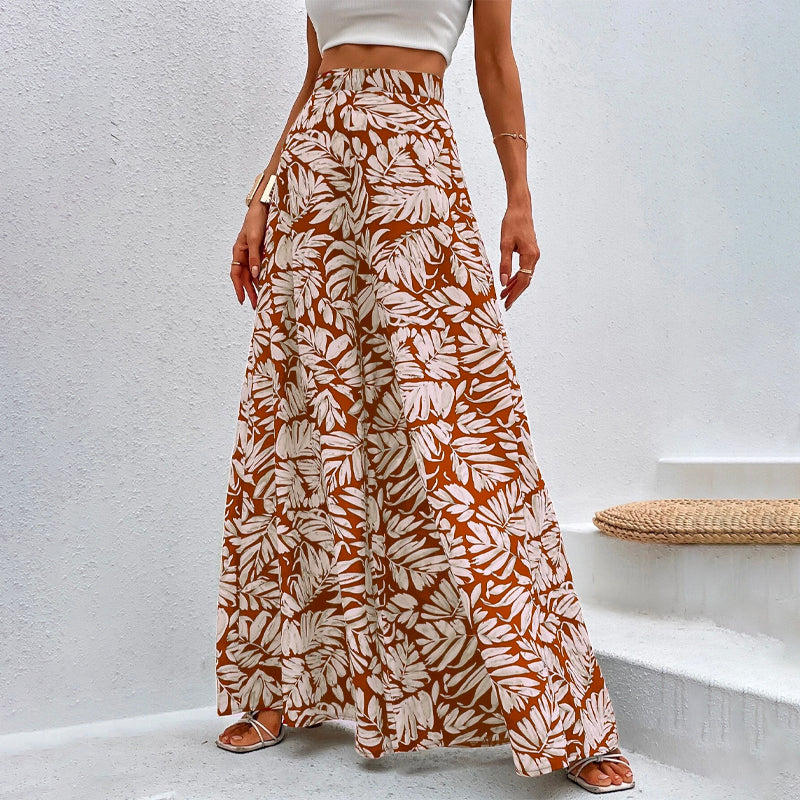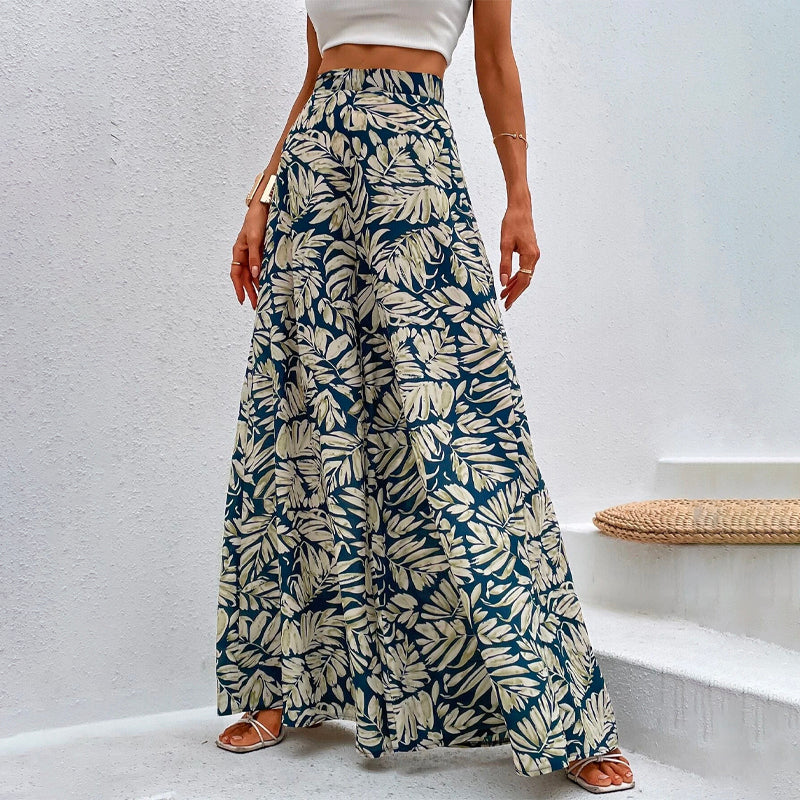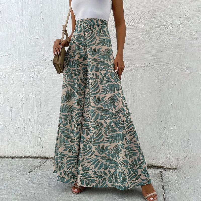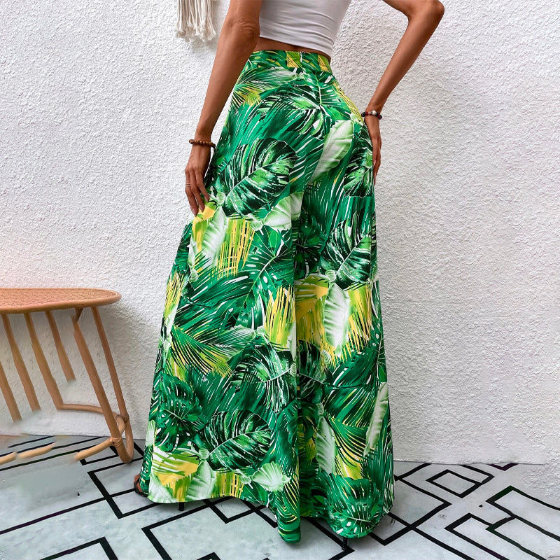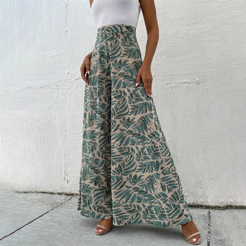 Tropical Print Wide Leg Pants