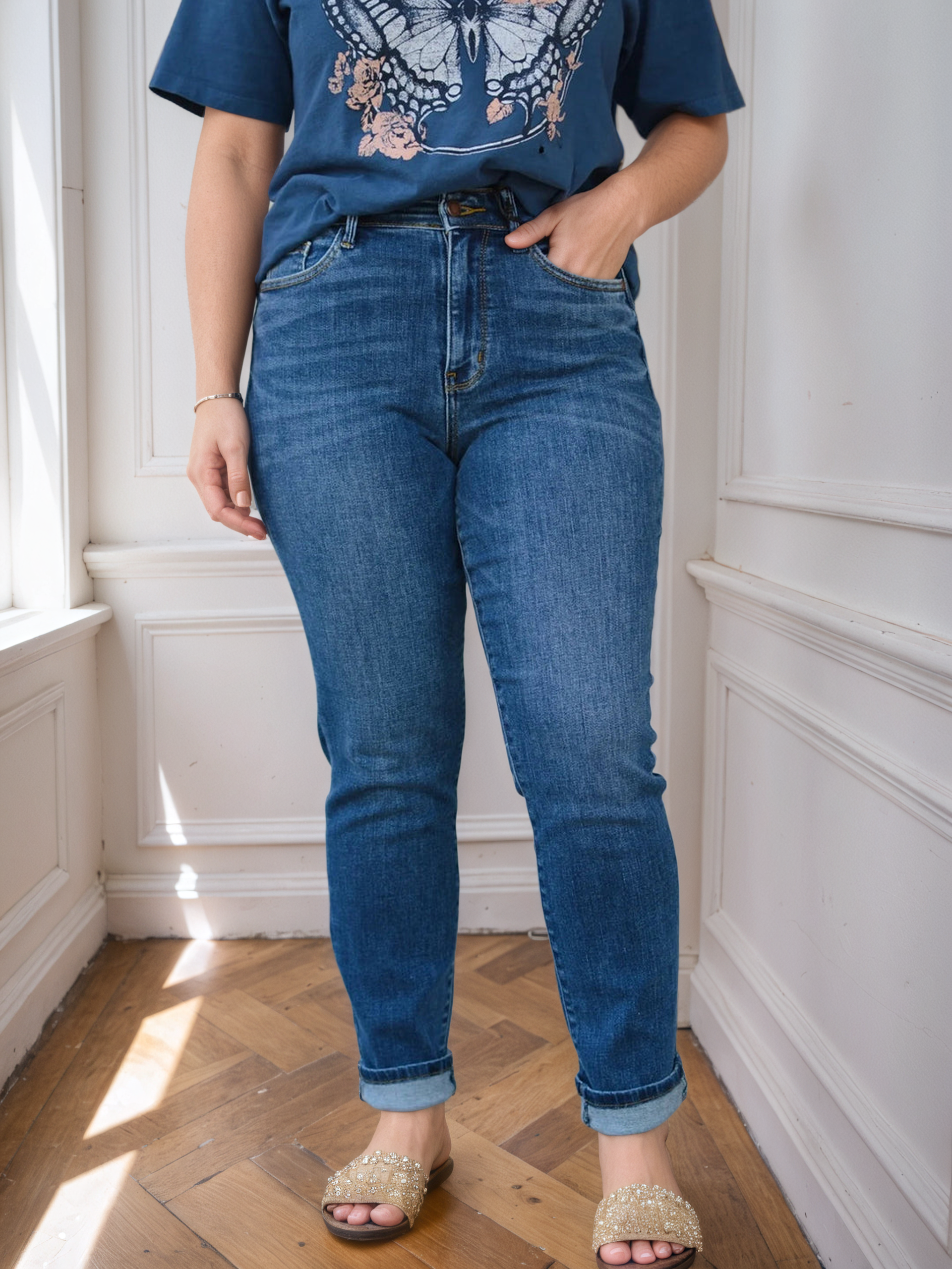These JB Jeans are the holy grail of denim and the epitome of trendy meets comfort! These have a relaxed fit! That is one of our favorite cuts here because it flatters ALL figures, is one of the trendiest styles, and is so comfortable!