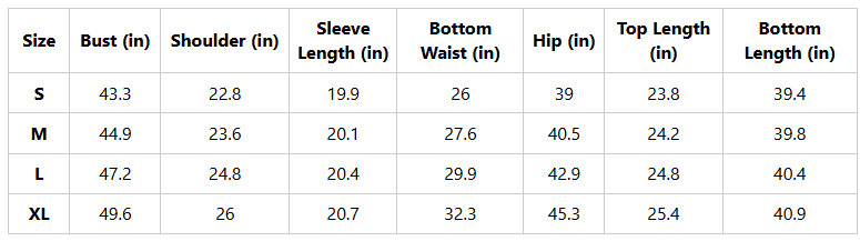 SIZE CHART (Inches) - TOP & BOTTOM