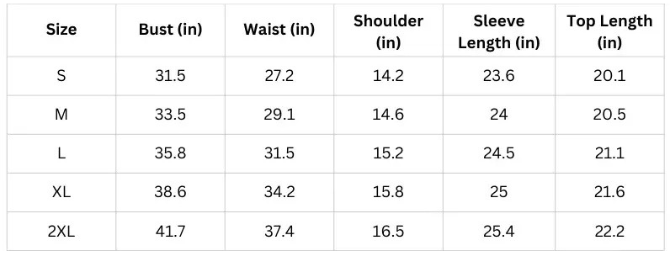 SIZE CHART - TOP (Inches)