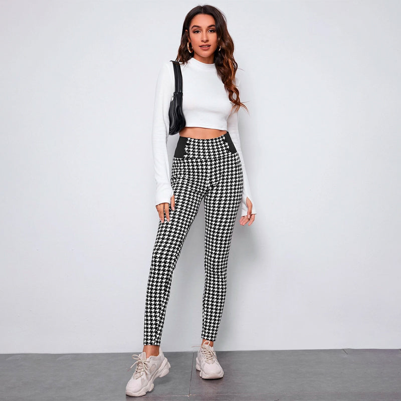 You are sure to stand out in these chic and feminine Wide Waistband Print Pants. With an elegant look, these classic pants pair perfectly with heels or sneakers for any occasion. the houndstooth pattern and elastic waist add a layer of comfort and style. These pants feature a skinny fit which will look great with all of your outfits.