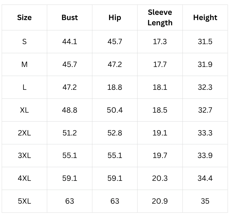 Size Chart(inch):