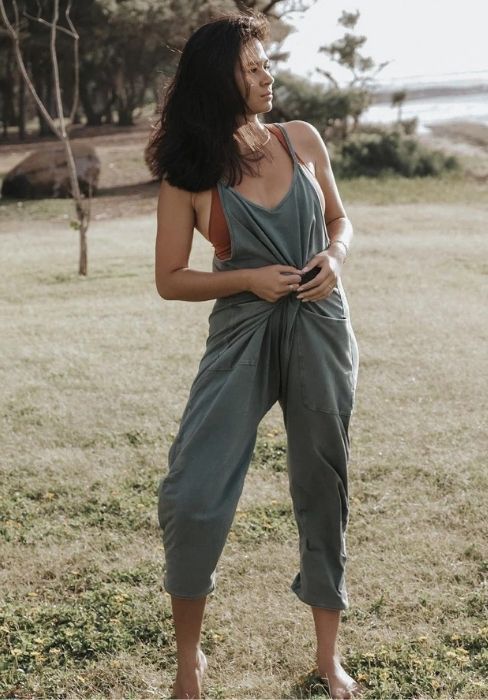 This jumpsuit is just for you! A perfect match for layering on Spring days, or for lounging around the house.