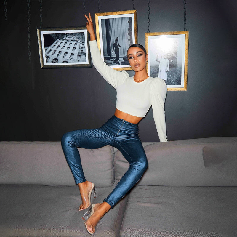 Zip Front Wide Waistband Coated Pants