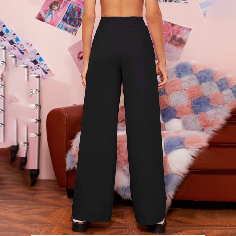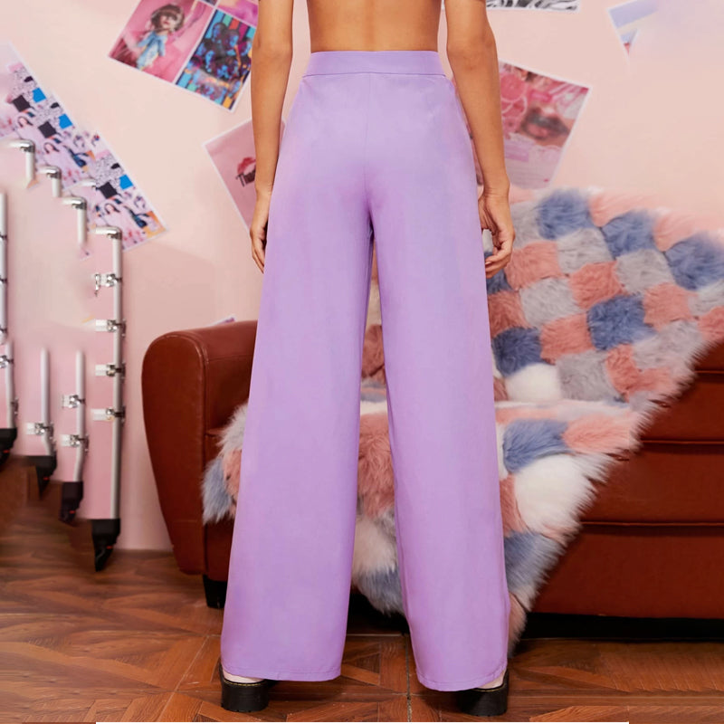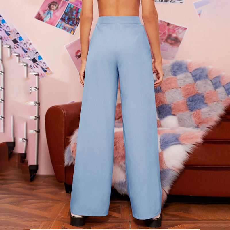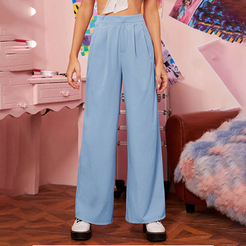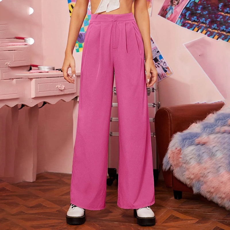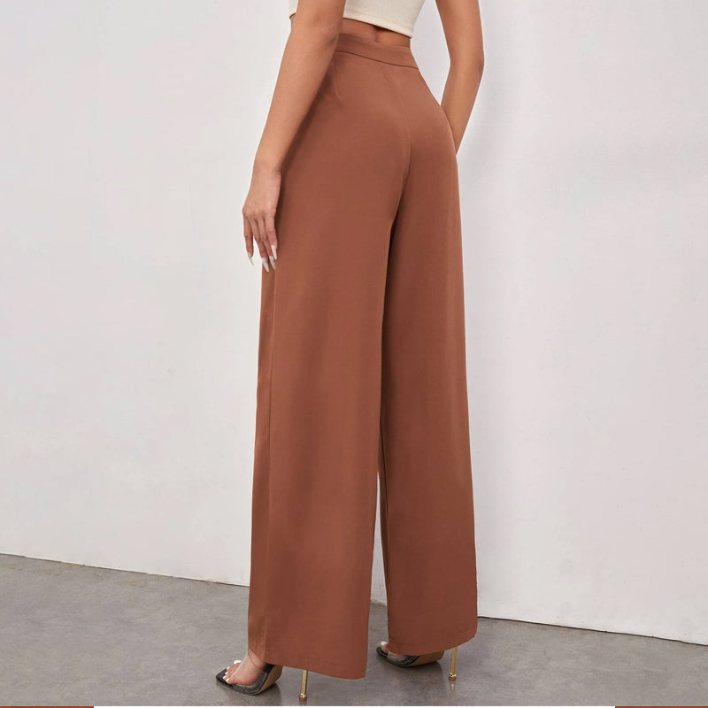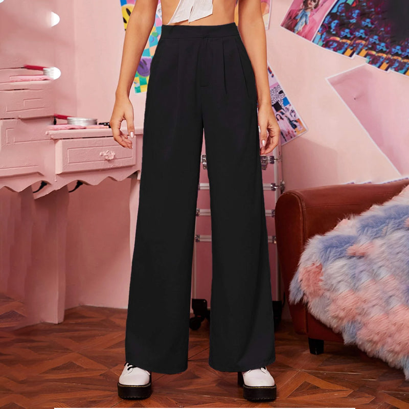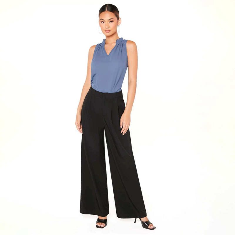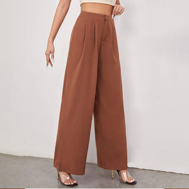 Zipper Fly Fold Pleated Palazzo Pants