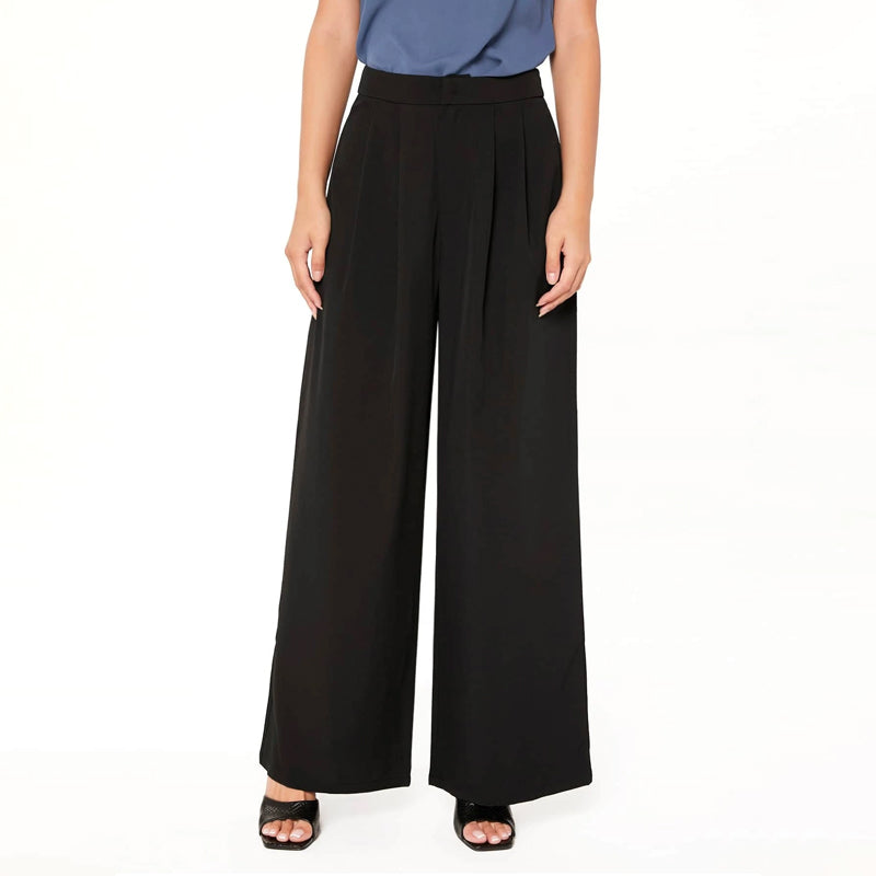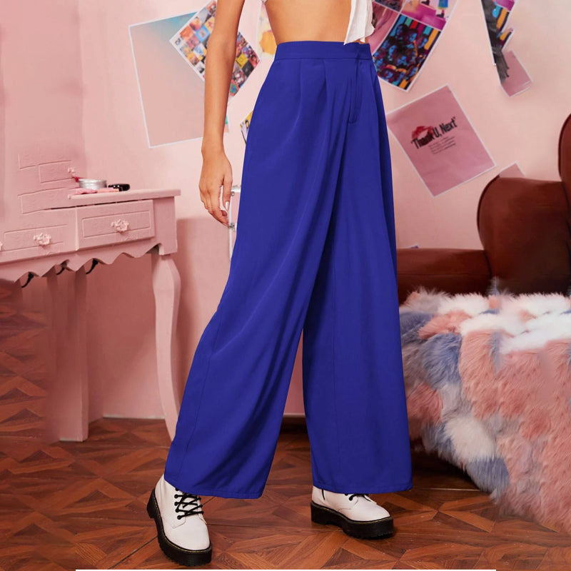 Zipper Fly Fold Pleated Palazzo Pants is made from a soft cotton blend that's both breathable and easy to care for. It features an elastic waist, pleated style, and high waist which adds a unique style to your wardrobe. The elastane-blended polyester adds comfort to these beautiful-looking pants.